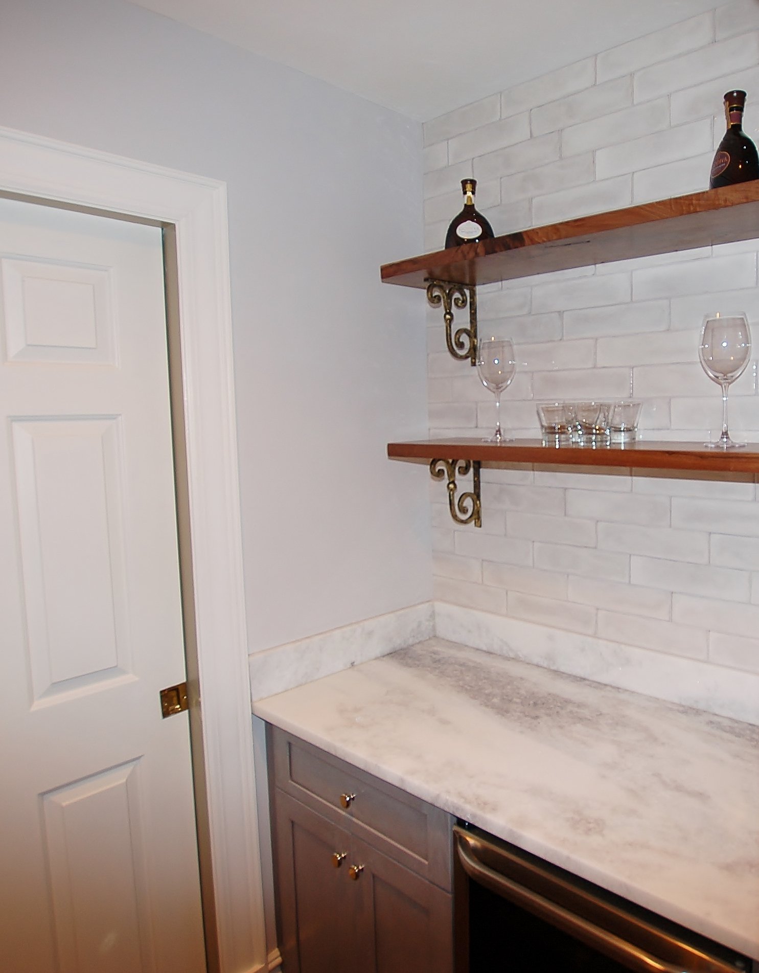 This cabinetry project is a perfect example of how thoughtful design and expert craftsmanship can transform a home. At the heart of the space is a striking navy island, paired with a marble countertop that adds both elegance and functionality. The island cabinetry is detailed with precision joinery and integrated storage, making it a true centerpiece for gathering and entertaining.