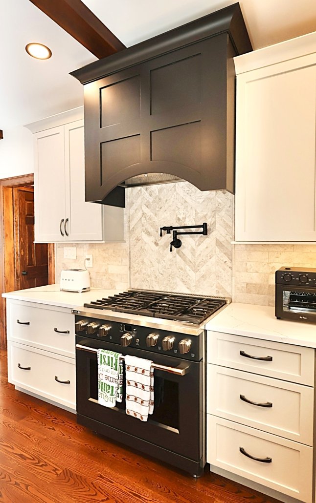 This impressive sized kitchen was remodeled from Tuscan to modern chester county farmhouse, resulting in a space that earns its spot as one of our most dramatic transformations.