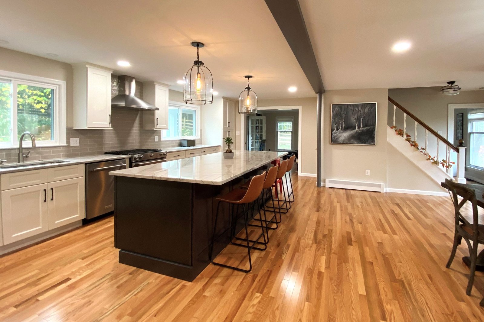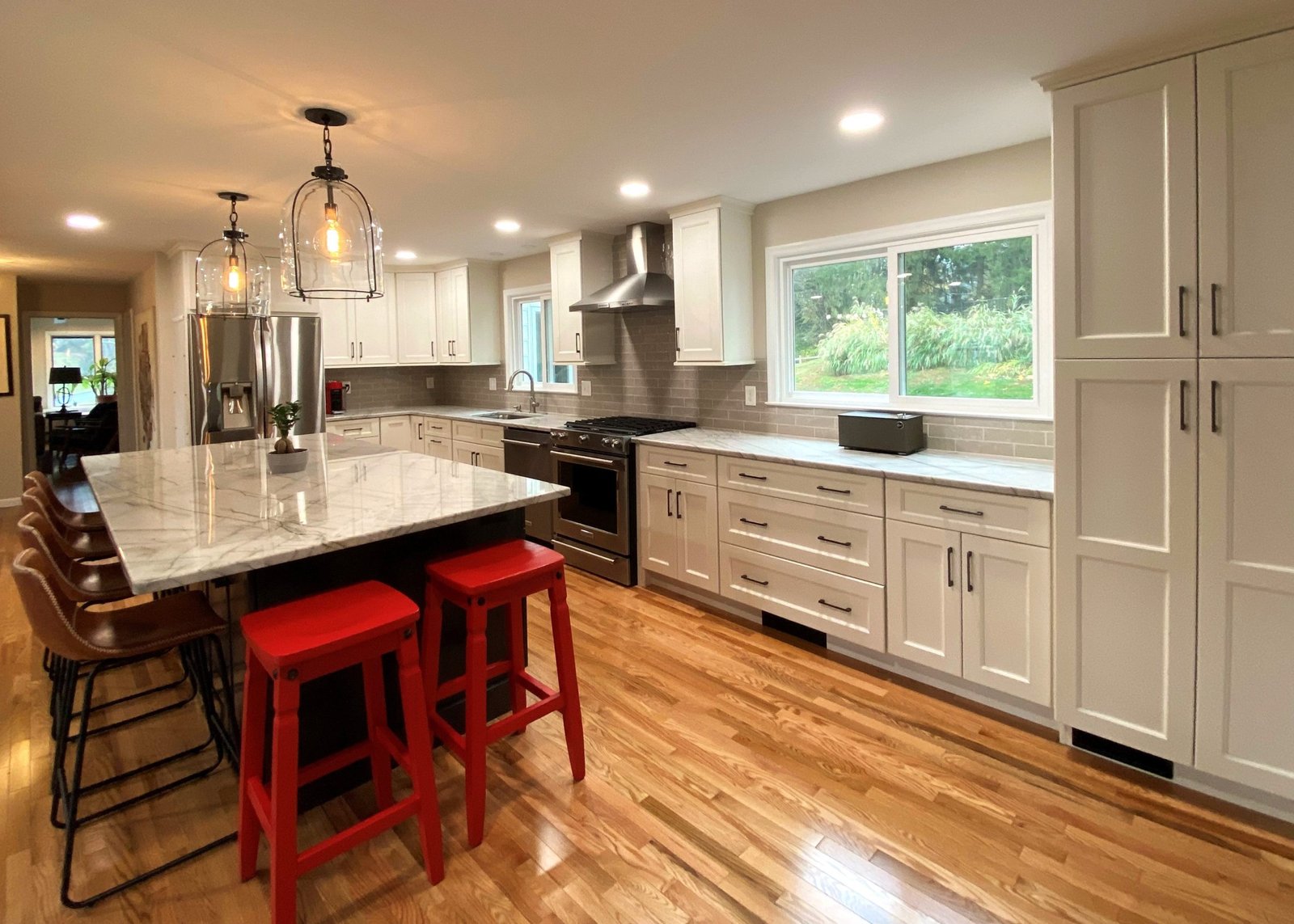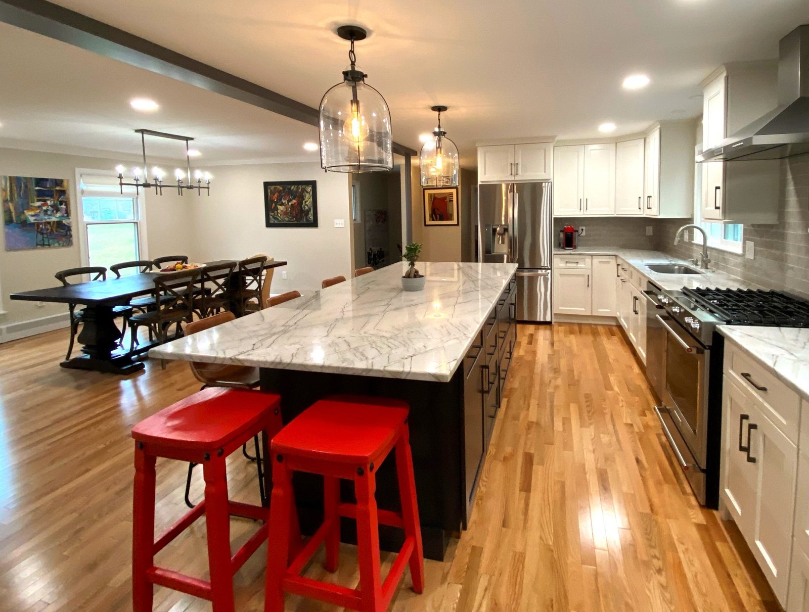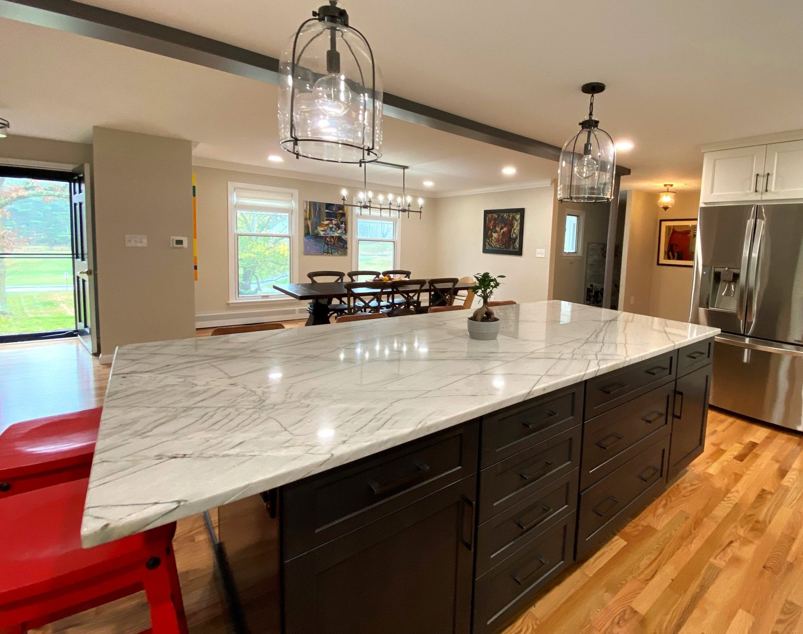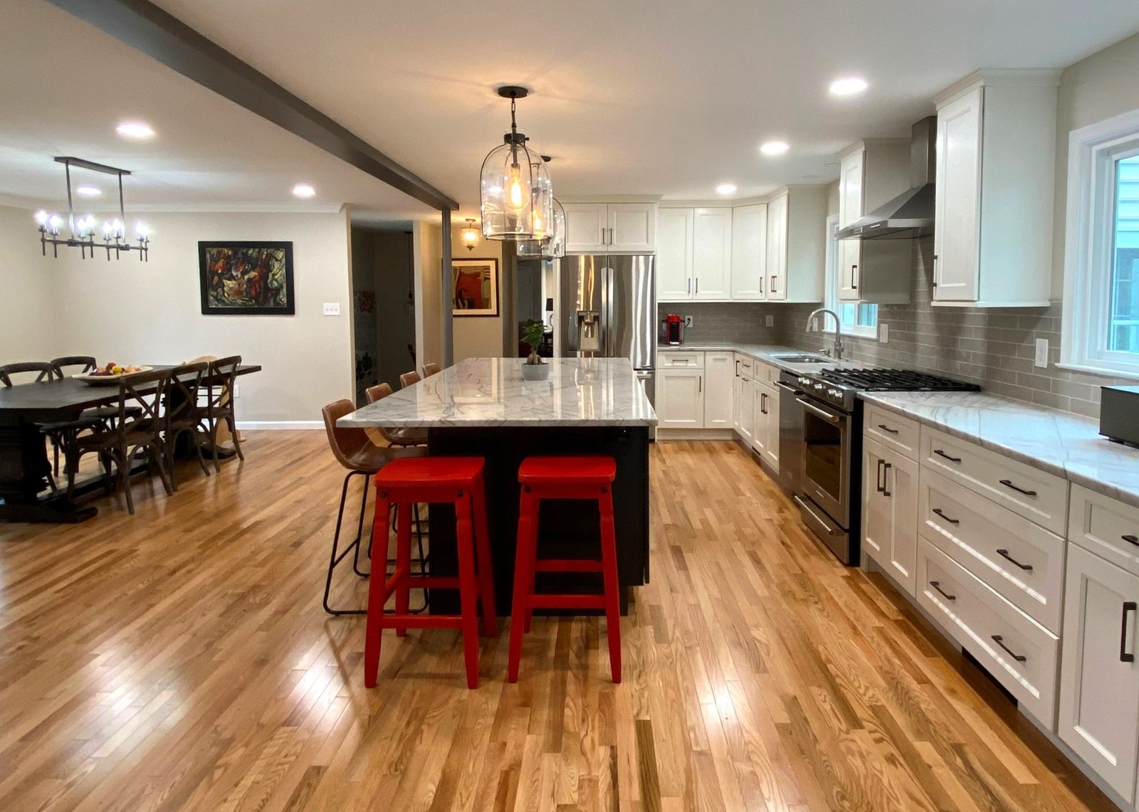 Chester County Kitchen and Bath completed a stunning modern open-concept kitchen remodel in Chester County, PA, combining contemporary elegance with everyday practicality. The open layout seamlessly connects the kitchen and dining areas, improving flow for daily use and entertaining.
