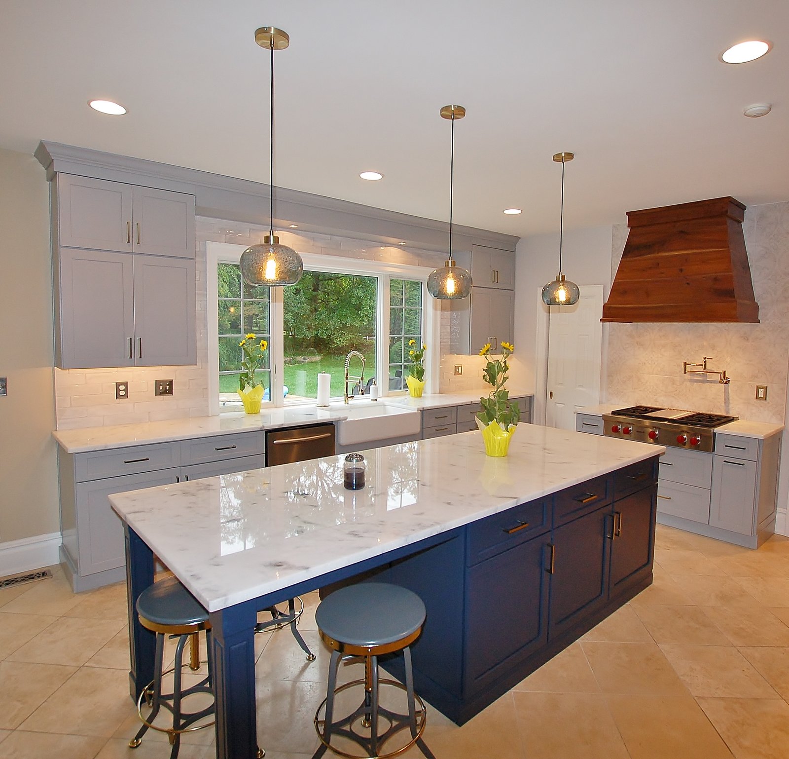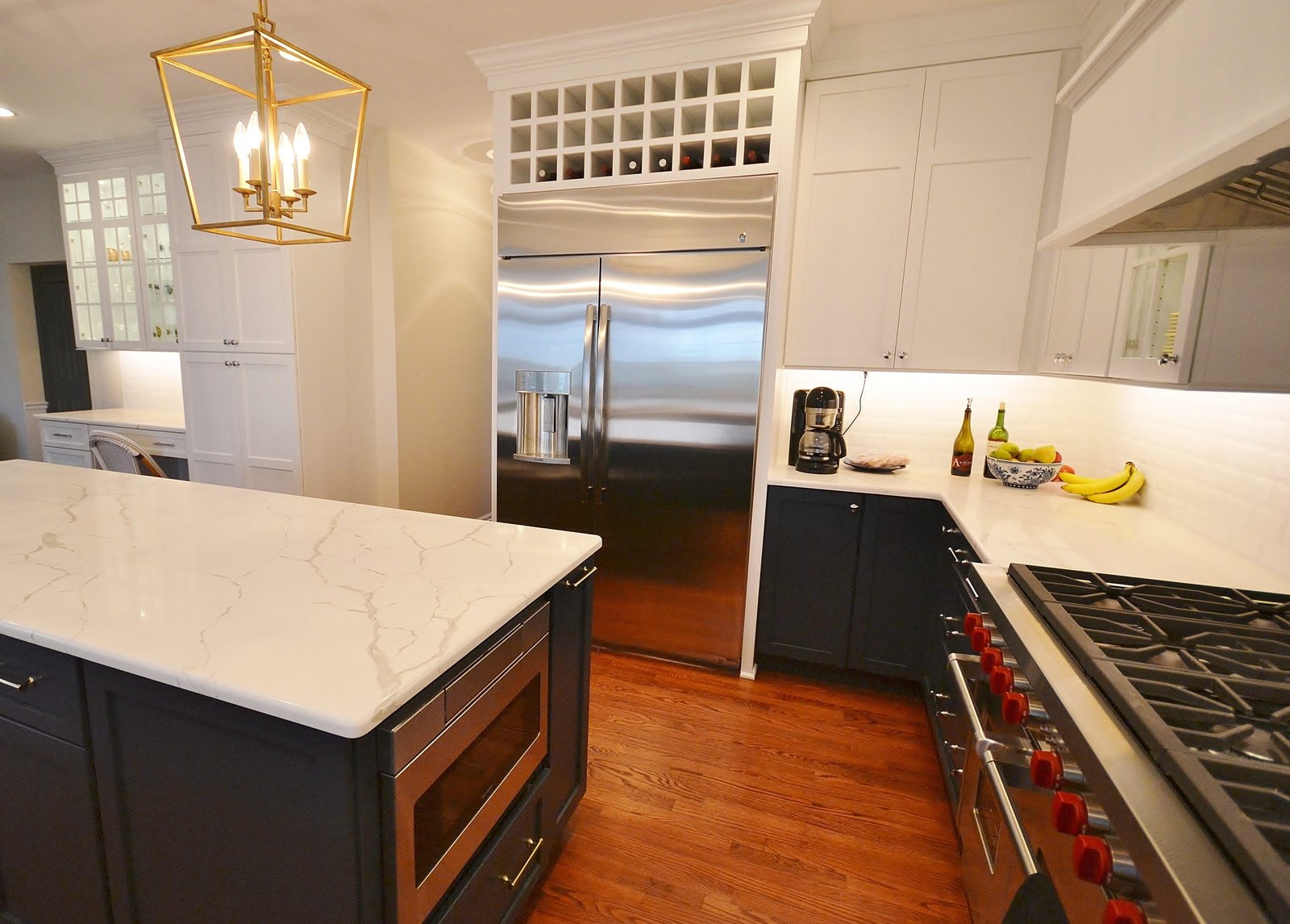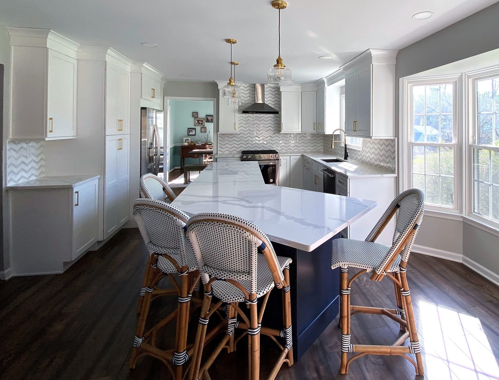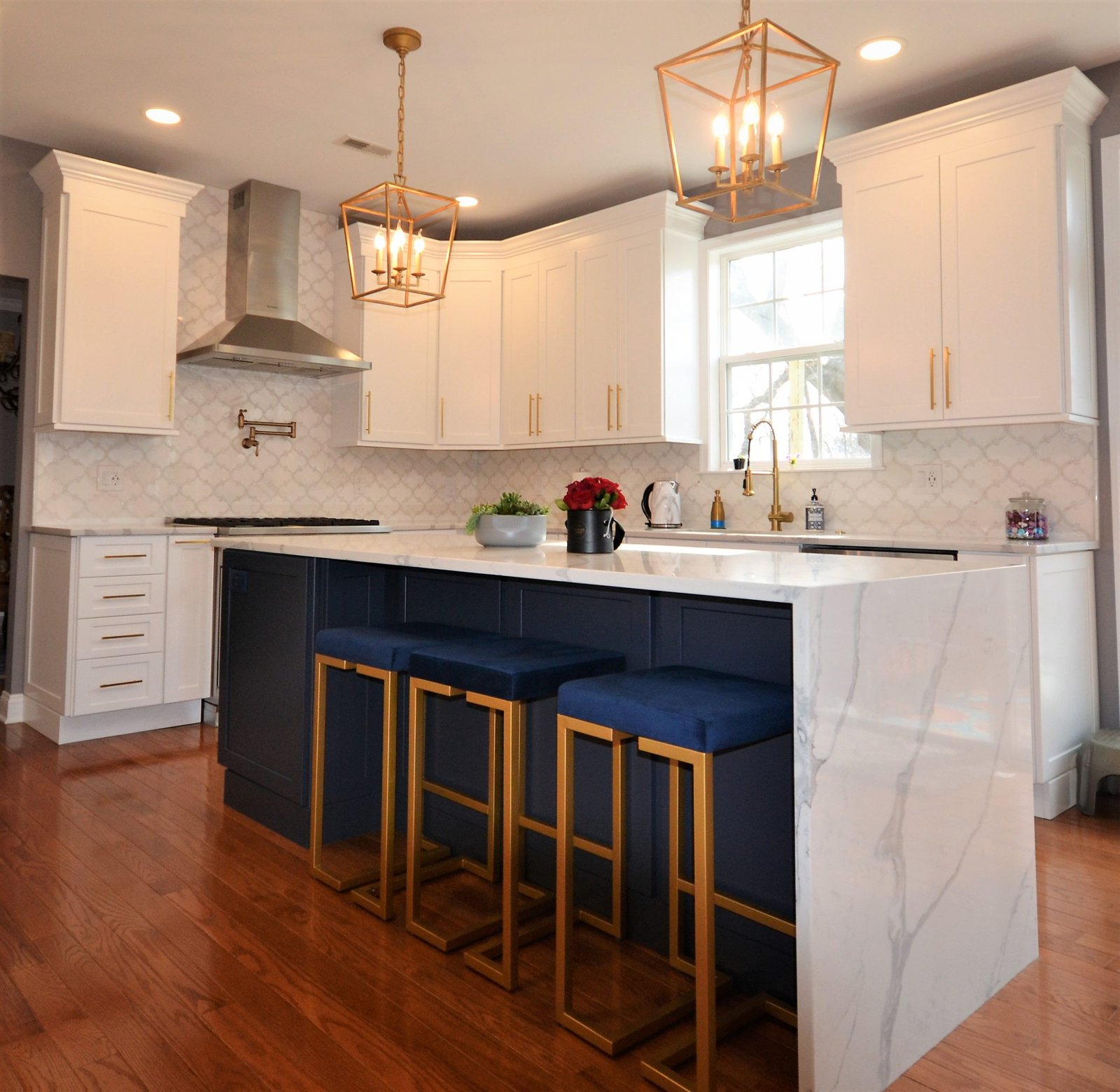 Navy & White Elegance with Gold Accents – Kitchen Remodel
