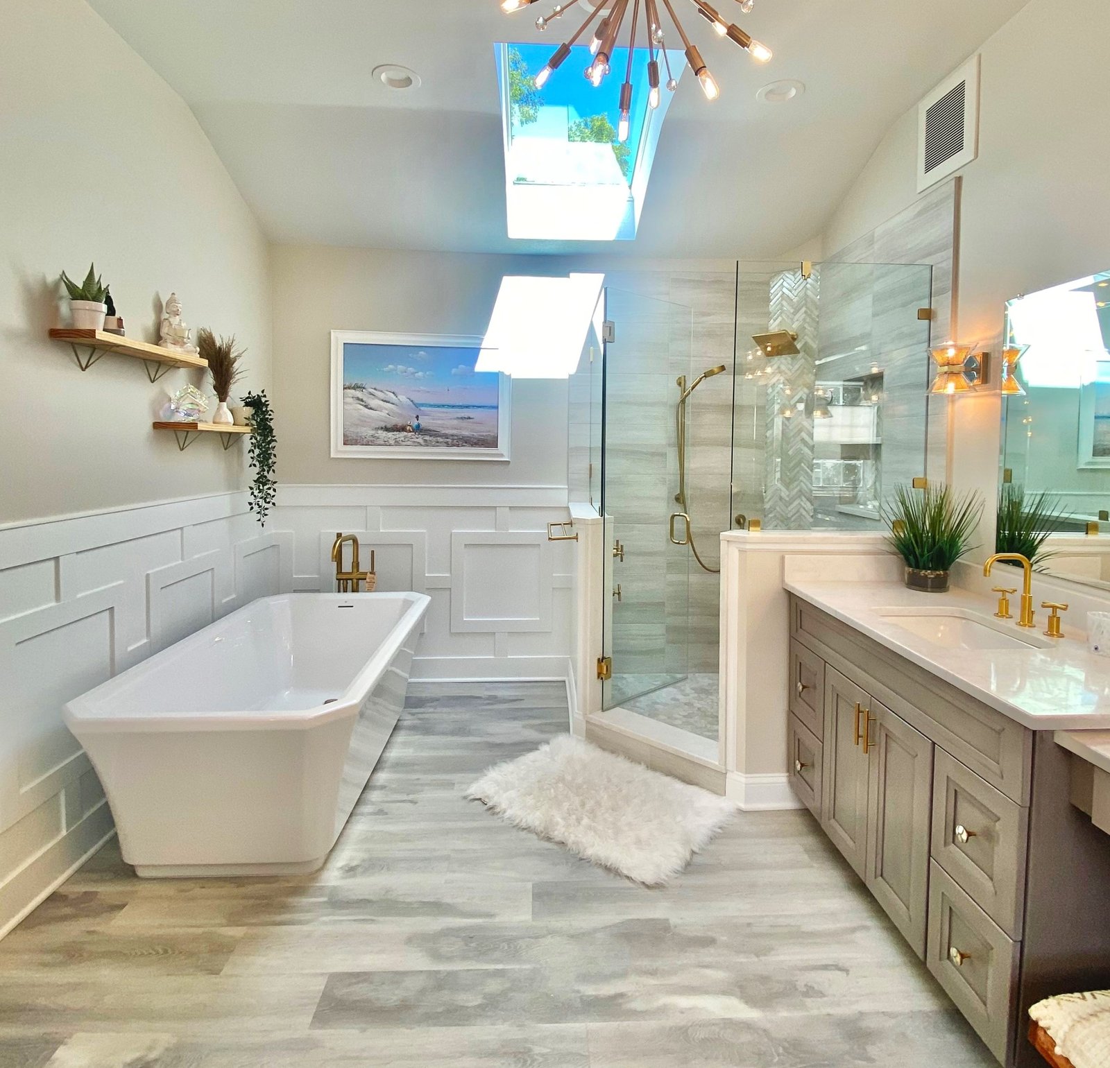 Spa-Inspired Bathroom with Freestanding Tub and Skylight