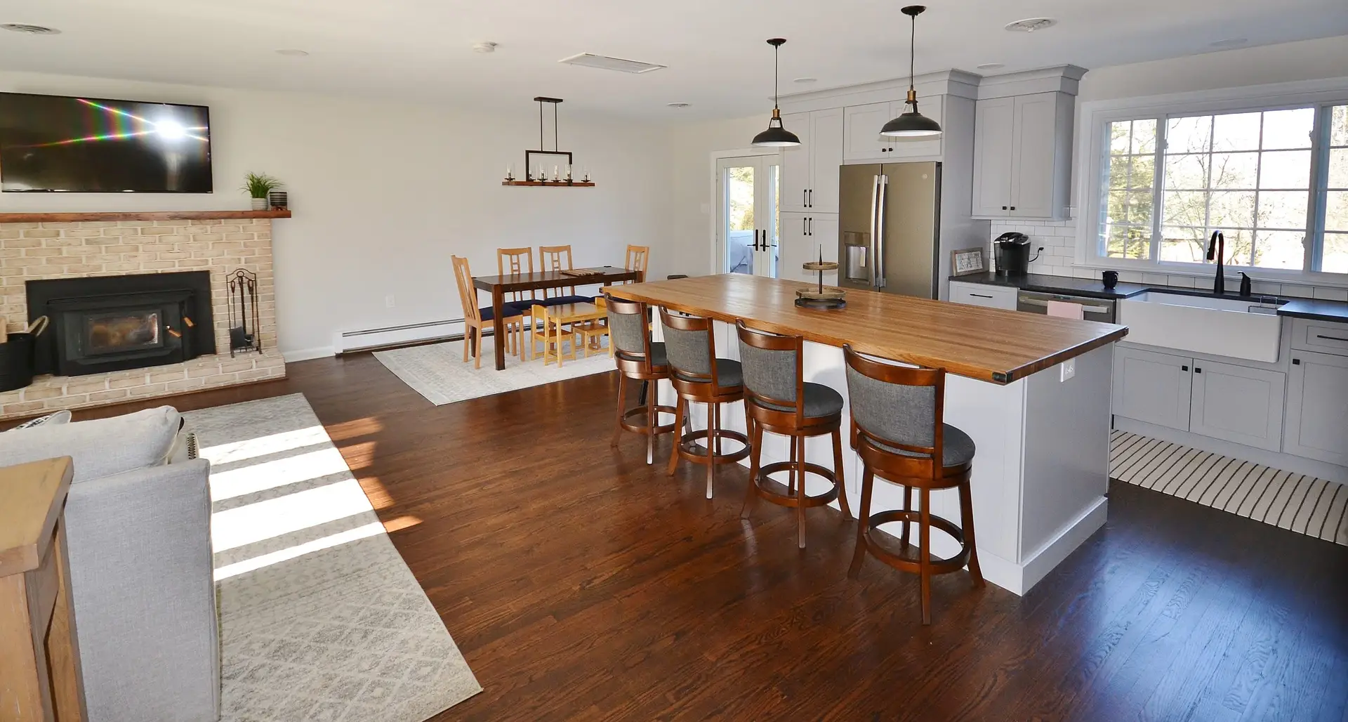 Farmhouse Kitchen with Expansive Butcher Block Island
