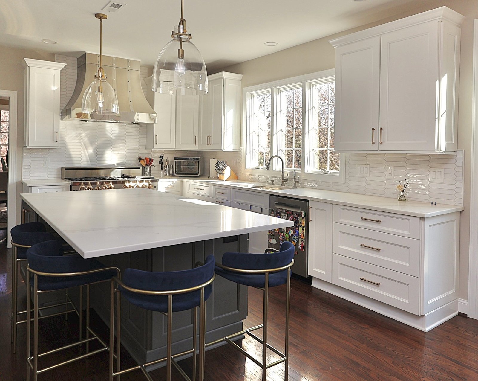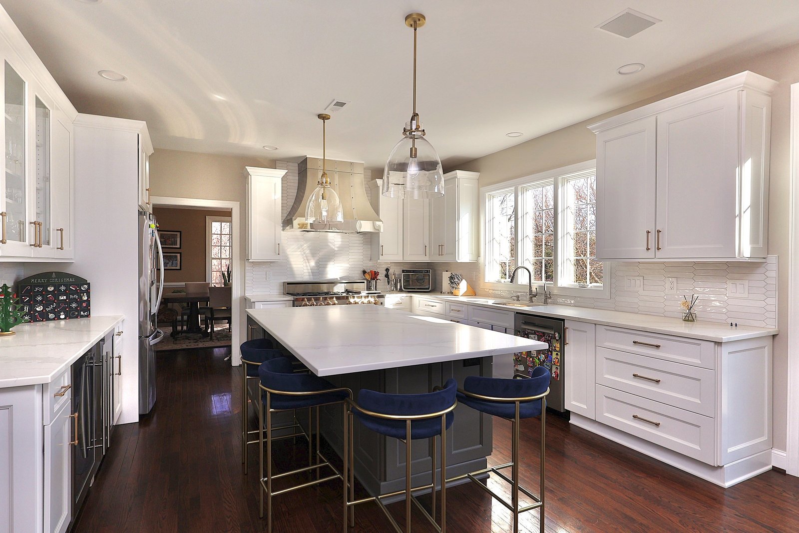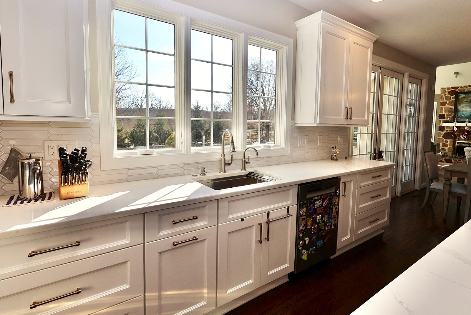 This Chester County kitchen remodel blends modern elegance with functional design. Custom cabinetry offers ample storage while the expansive quartz island serves as both a prep space and a gathering spot for family and friends. Warm wood tones complement crisp white accents, creating a balanced and inviting atmosphere. Updated countertops, refined finishes, and thoughtful layout changes make this space both beautiful and practical. The result is a kitchen that’s as perfect for daily living as it is for hosting memorable get-togethers.